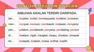 AImbuhan Awalan-Awalan Kata KerjaKata namaAwalan kata Adjektif. Ejaan ini sempat digantikan oleh EBI sejak tahun 2015 hingga edisi kelima dirilis pada Agustus 2022. BImbuhan Akhiran Akhiran Kata NamaAkhiran.